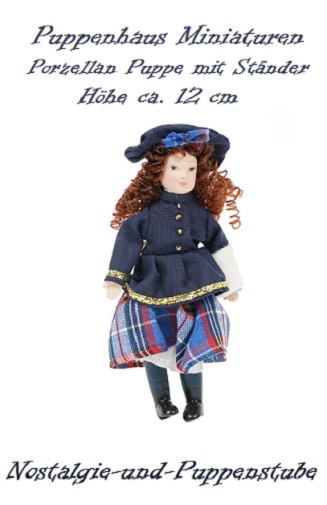 Puppenhaus Miniaturen Puppen Porzellan Puppe mit Ständer ca. 12 cm 1176