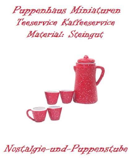 Puppenhaus Miniaturen Deko Steingut Teeservice Kaffeeservice rot 8069