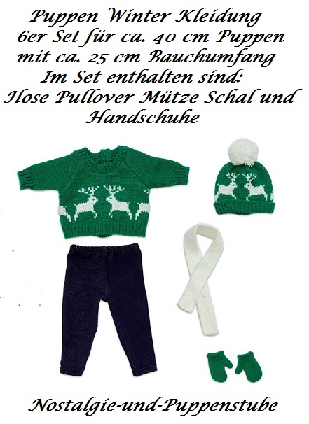 Die Bekleidung paßt den 36 - 41 cm großen Puppen mit einem Bauchumfang von nicht mehr als ca. 24 cm bis 25 cm