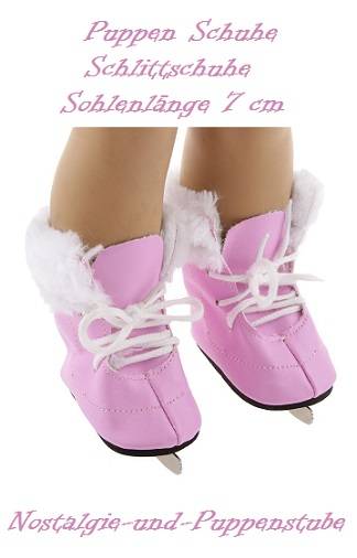 Puppen Schuhe Schlittschuhe rosa Sportschuhe Eislaufen 7 cm lang, Nr. 8211